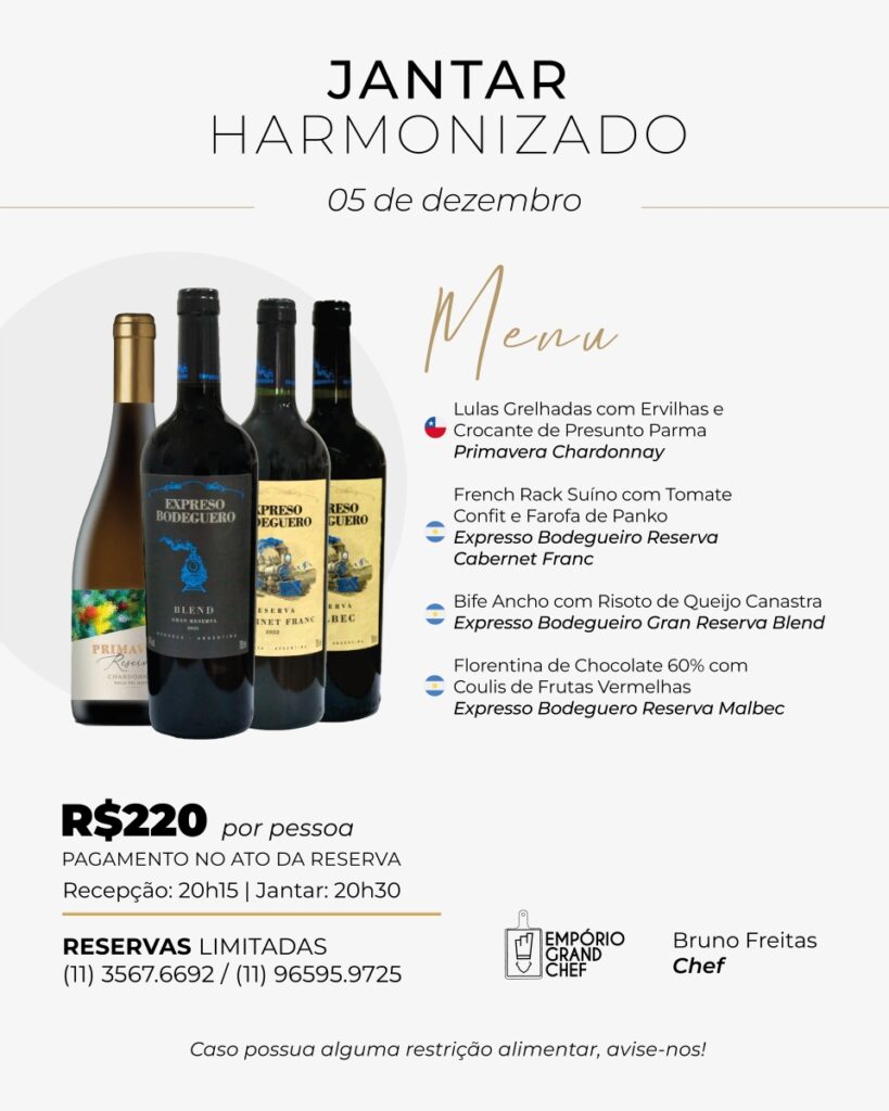 No dia 22 de outubro, o Empório Grand Chef promoveu dois jantares harmonizados pelo Chef Bruno Freitas e os Sommeliers Daniela Silva e Carlos Moura.