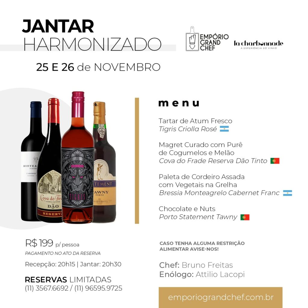 Jantar Harmonizado: 25 e 26 de agosto de 2023