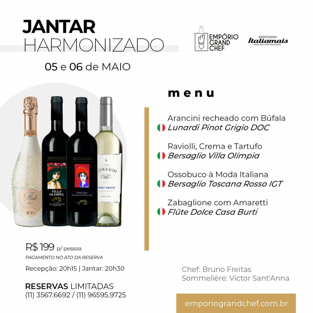 Jantar Harmonizado: 05 e 06 de maio de 2023