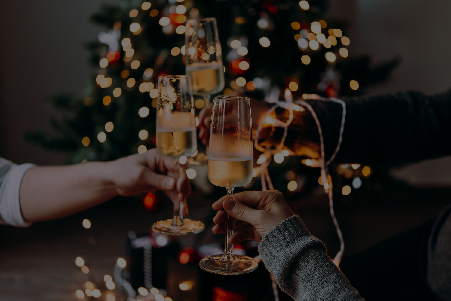 New,Year,And,Christmas,Celebration,With,Champagne,In,Front,The